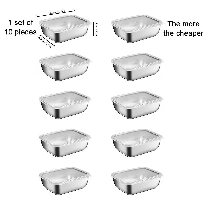 10-Piece Stainless Steel Set – Durable, corrosion-resistant containers ideal for daily use.