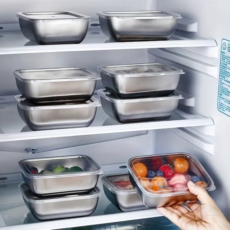 Upgrade your kitchen storage with this 10pcs Stainless Steel Square Food Storage Container Set, designed for modern homes that value organization, hygiene, and sustainability. Each container is crafted from premium stainless steel, offering long-lasting durability and resistance to rust, odors, and stains. The smart square design maximizes storage space, allowing effortless stacking in refrigerators, freezers, and cabinets.