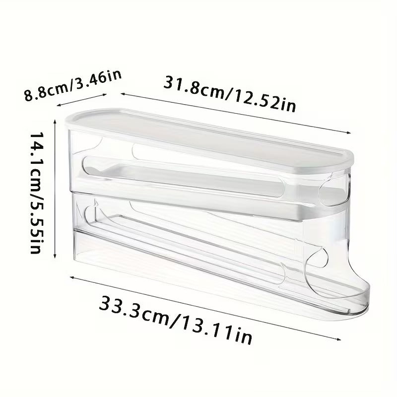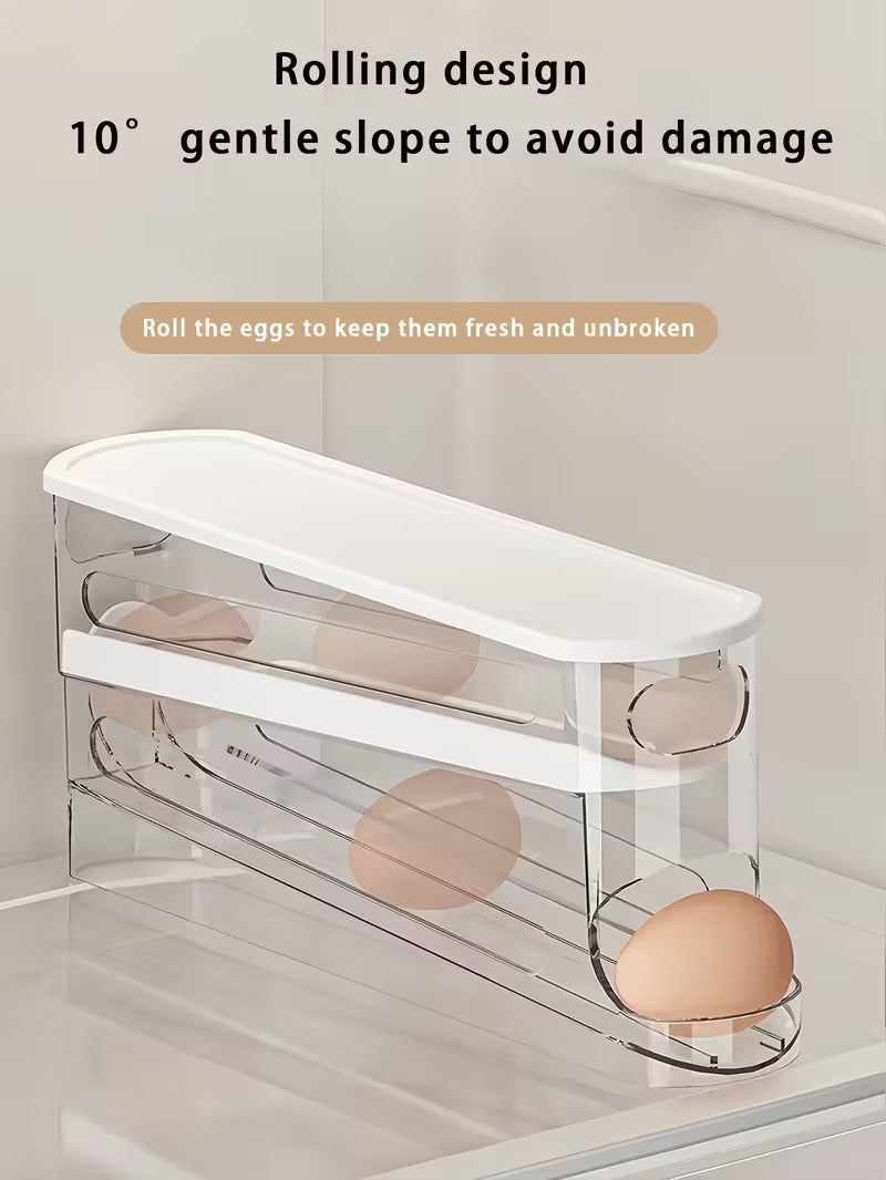 Organize your refrigerator with the 12-14 Egg Automatic Double-Layer Sliding Storage Box, designed for efficiency, freshness, and convenience. Its double-layer sliding system allows you to store 12–14 eggs in a compact space while keeping them easily accessible.