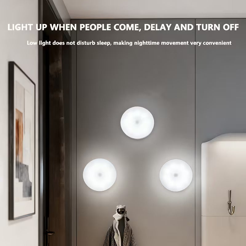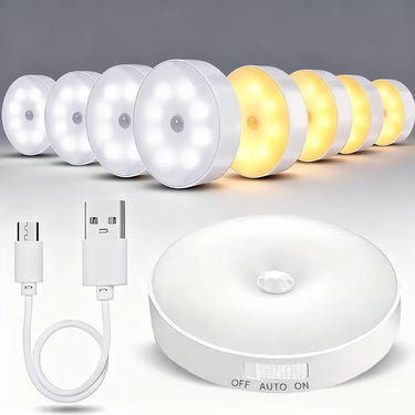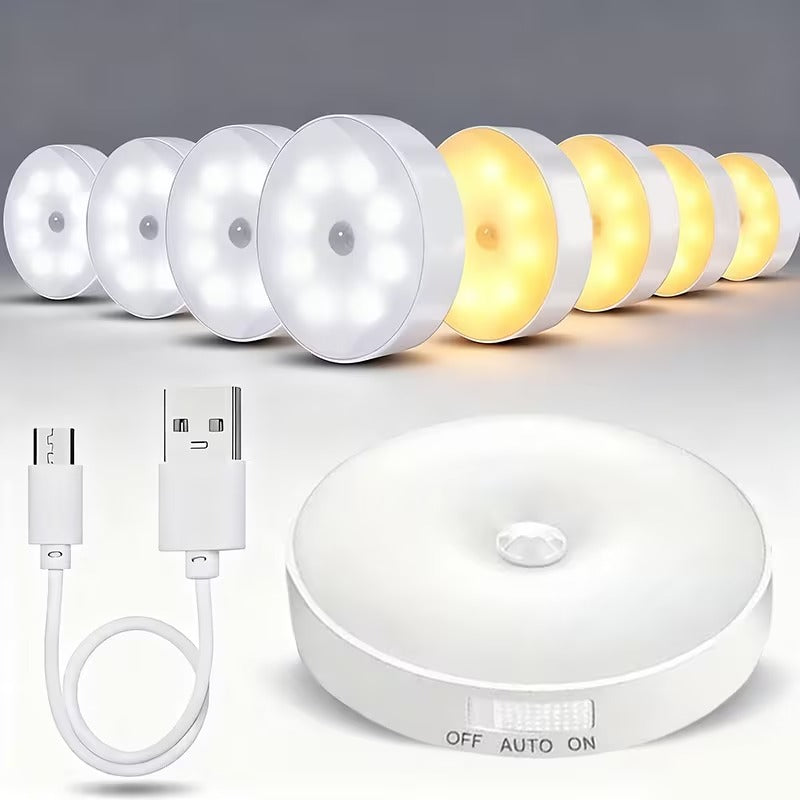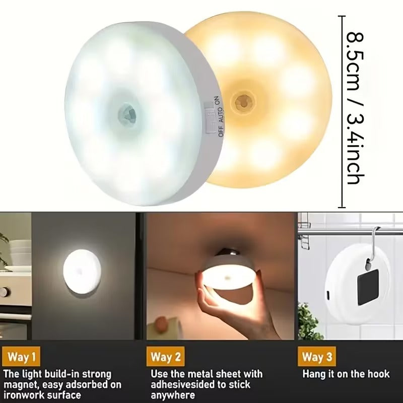 Rechargeable Motion Sensor LED Night Light – 8-LED Round Indoor Cabinet Light